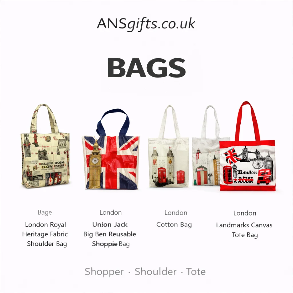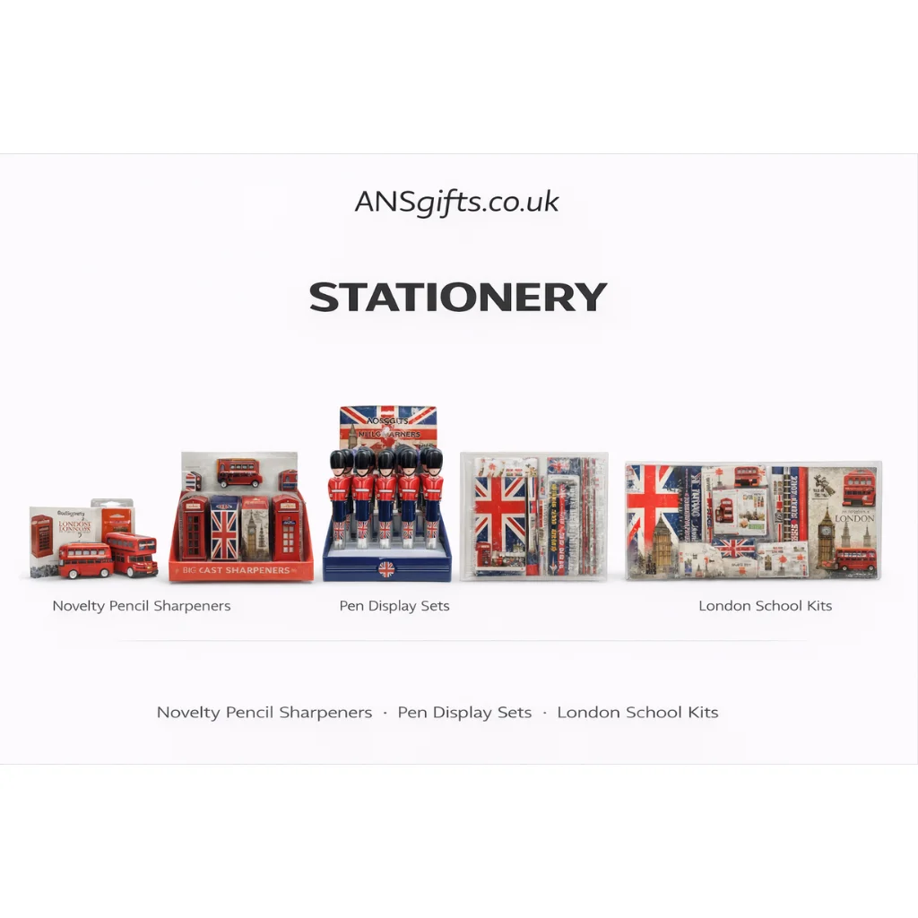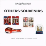 Celebrate iconic symbols — Big Ben, red buses, phone boxes and the Union Jack. Matching sets available across mugs, magnets, keyrings and apparel.