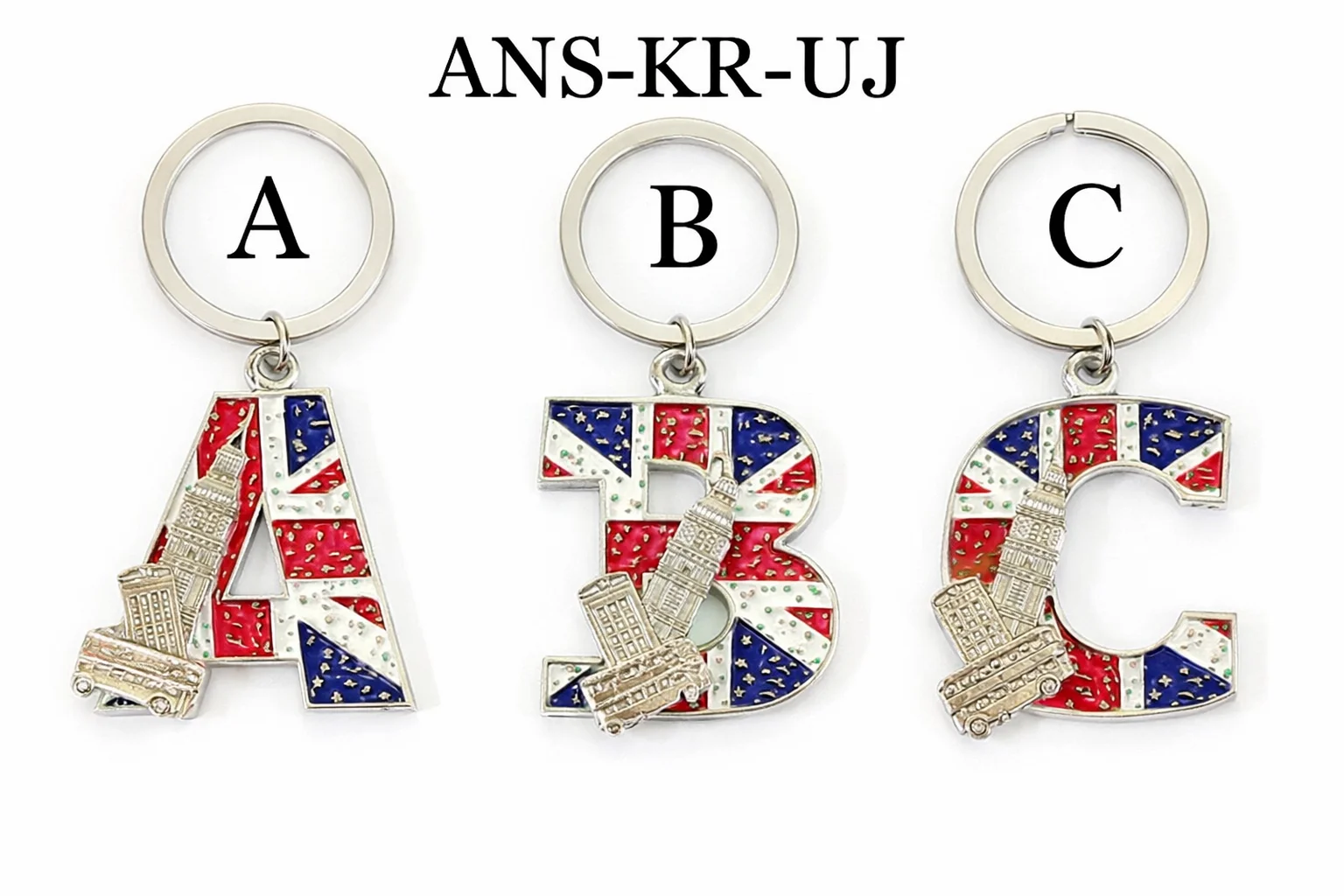 This Union Jack Alphabet Letter Metal Keyring features bold letter-shaped designs filled with colourful Union Jack enamel detailing and finished with raised London landmark accents, including Big Ben and classic British transport motifs. Crafted from solid metal, it offers a personalised and eye-catching London souvenir style, perfect for initials, gifting, or souvenir collections. Durable and stylish for everyday use, it is available in multiple letter options.
