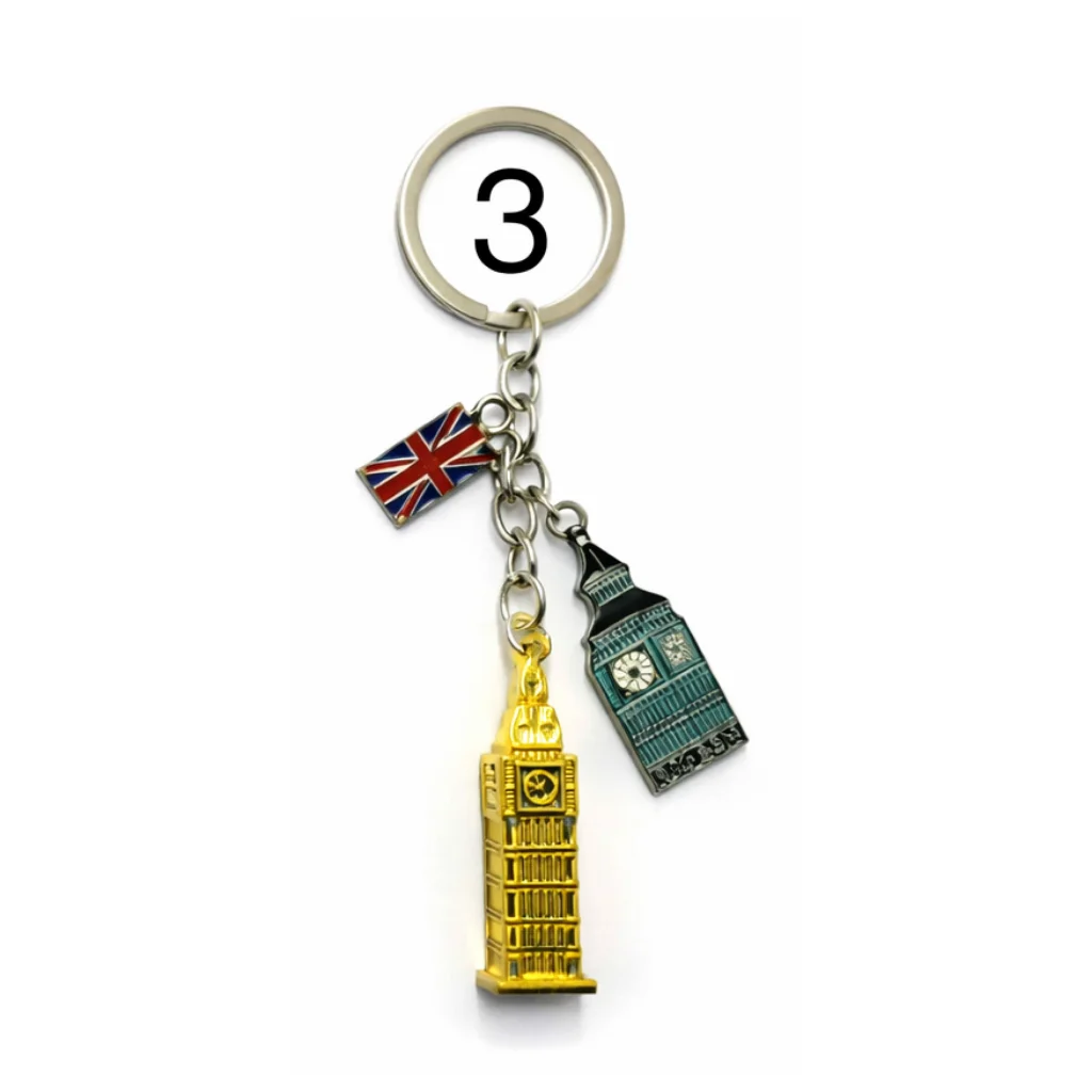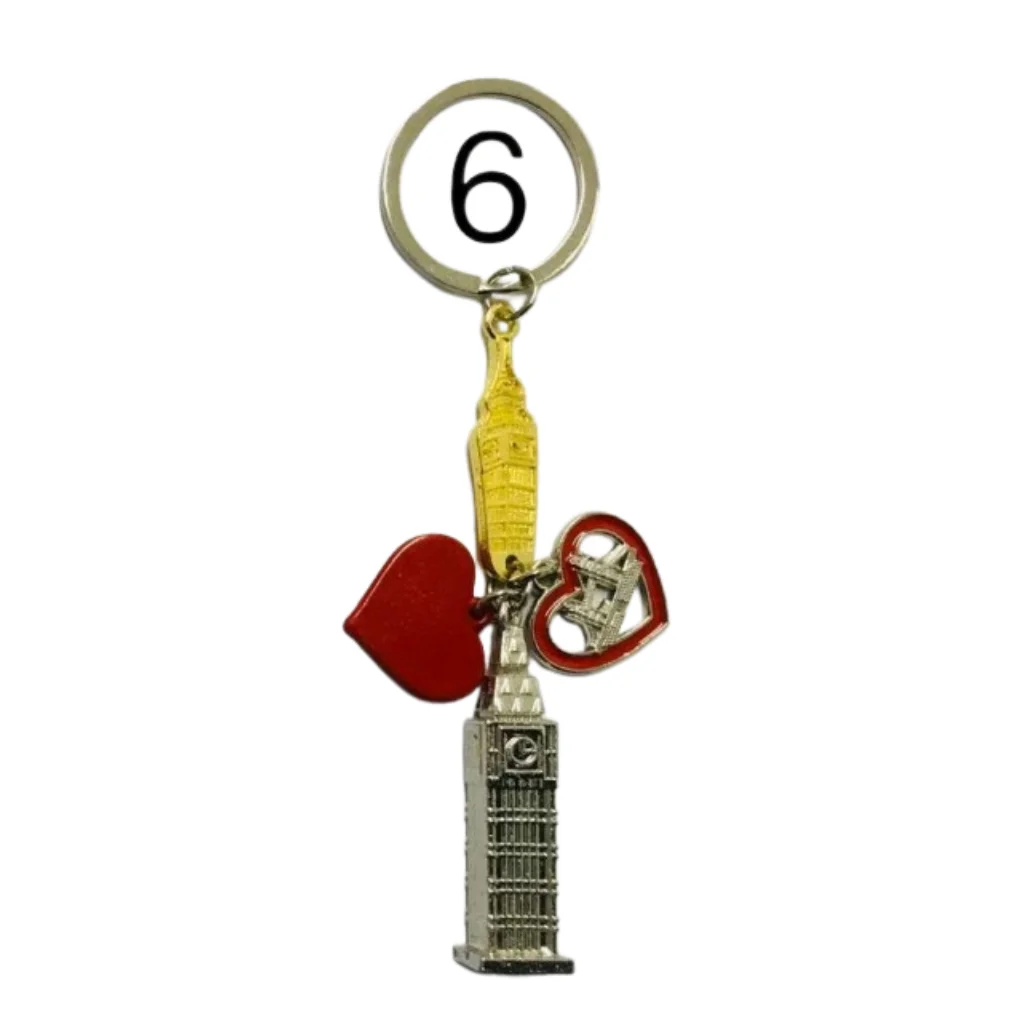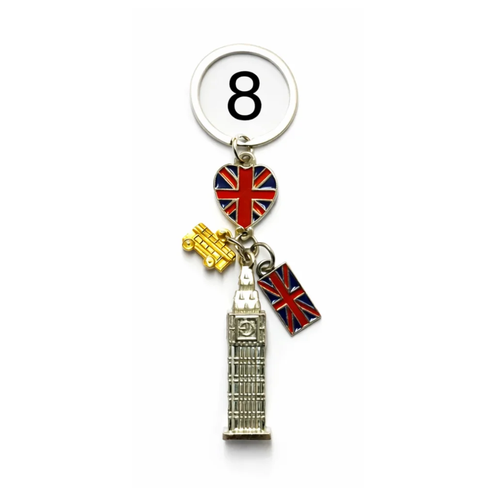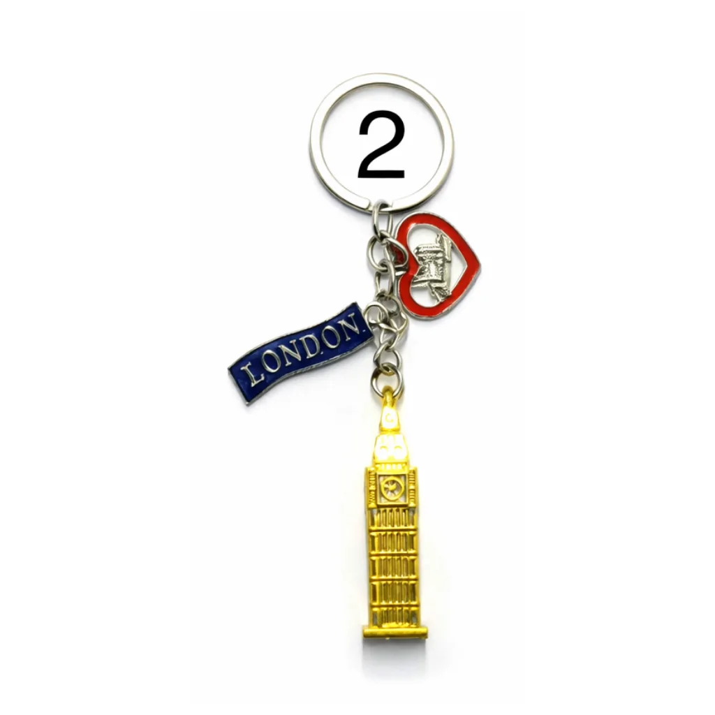 This classic London Big Ben Charm Keyring features a detailed Big Ben tower charm combined with a variety of iconic London symbols such as the Union Jack flag, royal crown, red telephone box, Queen’s Guard, heart accents, and London name tags. Crafted from durable metal with detailed enamel finishing, it includes a strong metal keyring, making it both decorative and practical.