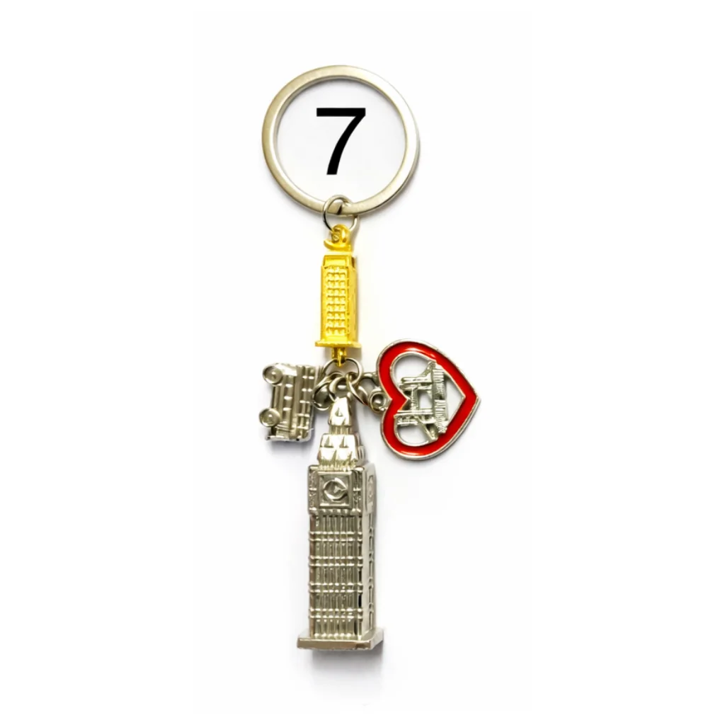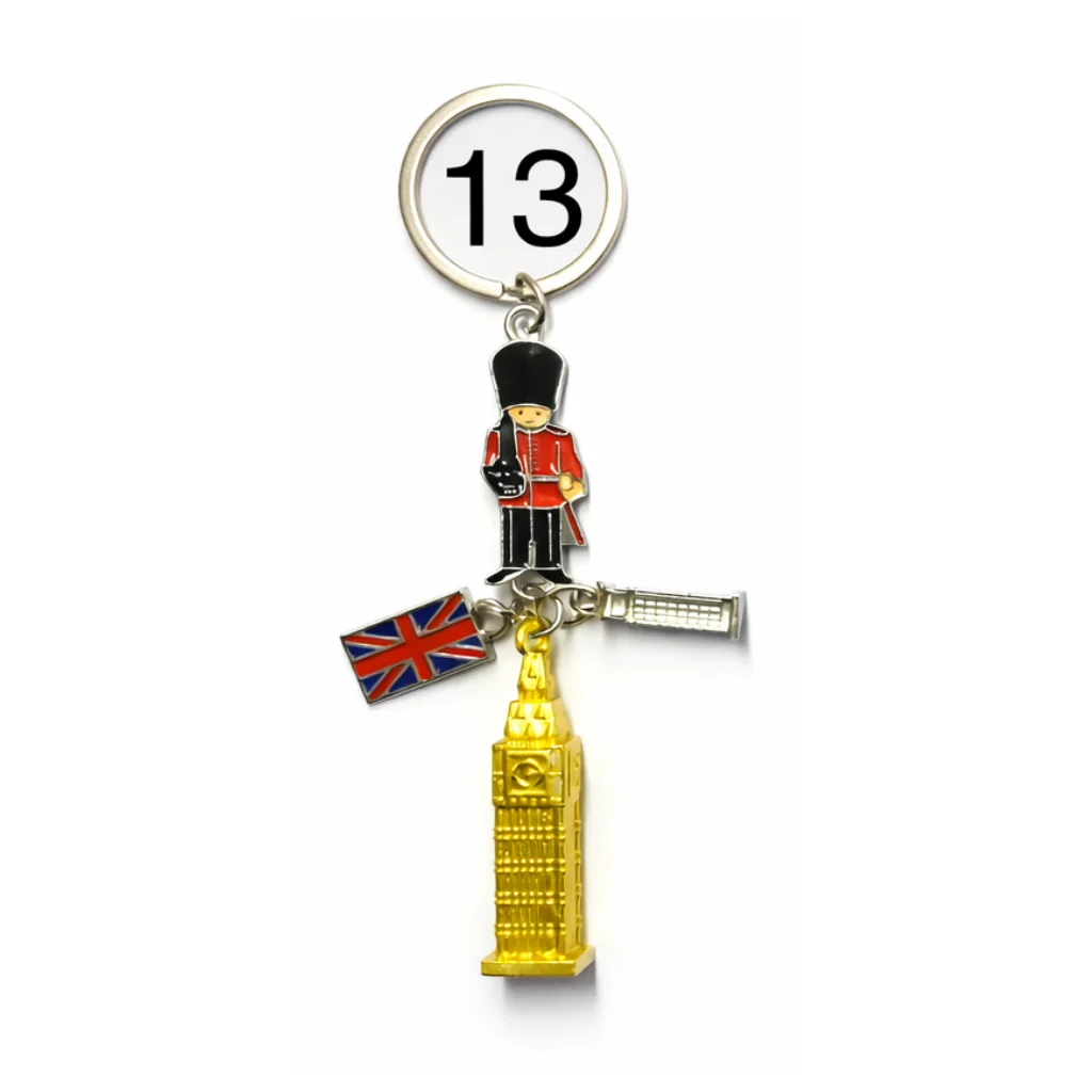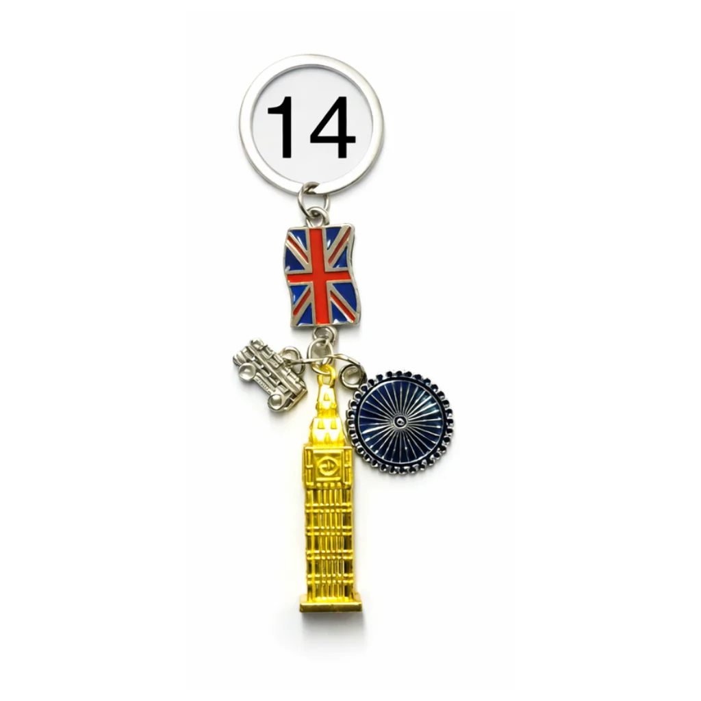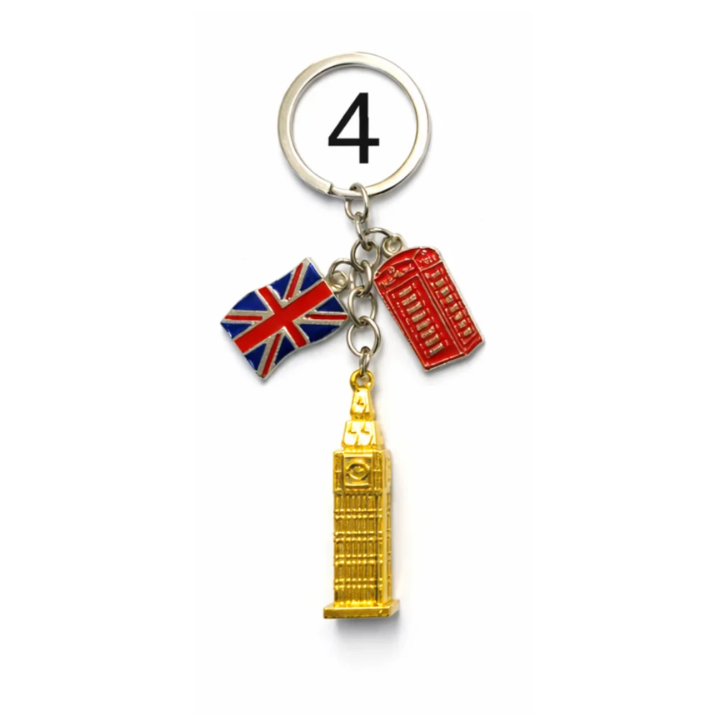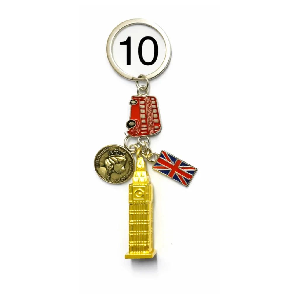 This classic London Big Ben Charm Keyring features a detailed Big Ben tower charm combined with a variety of iconic London symbols such as the Union Jack flag, royal crown, red telephone box, Queen’s Guard, heart accents, and London name tags. Crafted from durable metal with detailed enamel finishing, it includes a strong metal keyring, making it both decorative and practical.