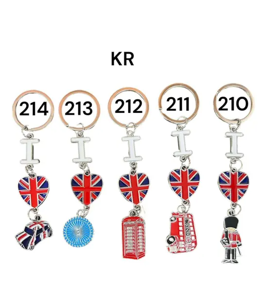 This London “I Love London” Charm Keyring Collection features a stylish vertical design with an enamel “I”, Union Jack heart, and iconic London-themed charms. Each keyring combines classic British symbols such as the London Eye, red telephone box, double-decker bus, Royal Guard, and travel motifs, crafted in solid metal with colourful enamel detailing. A fun and eye-catching souvenir range, perfect for gifts or everyday use.