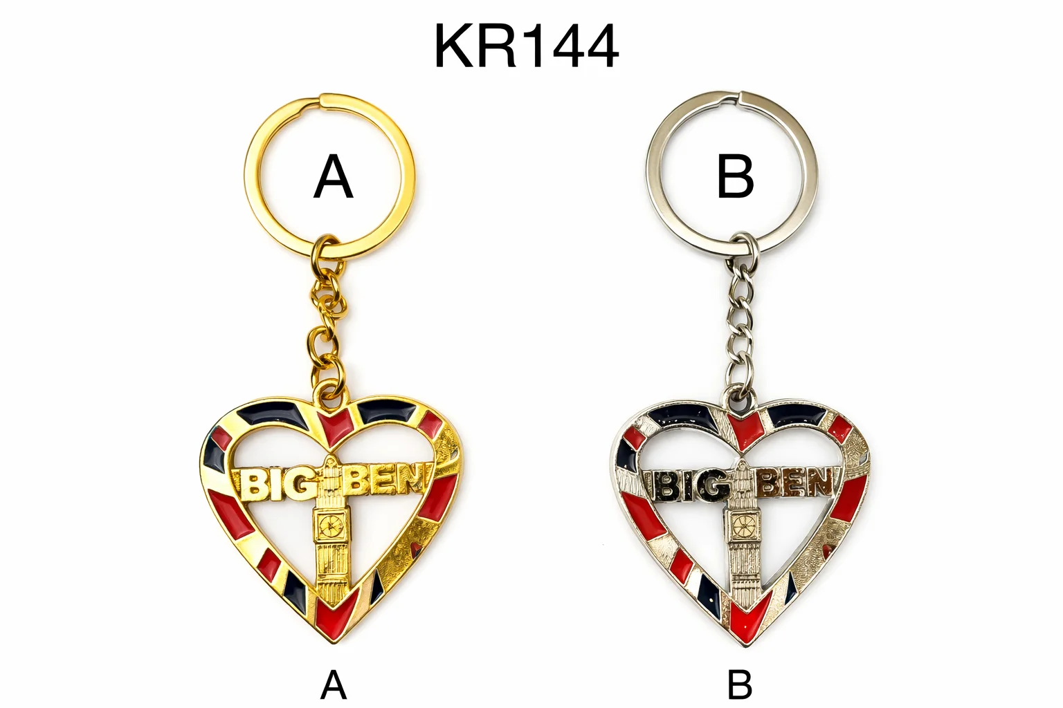This London Big Ben Heart Metal Keyring features a charming heart-shaped design decorated with Union Jack colours and a detailed Big Ben motif at the centre. Crafted from durable metal with an enamel finish, it blends iconic London imagery with a love-inspired shape, making it a perfect souvenir, gift, or everyday keepsake. Available with different metal ring finishes.