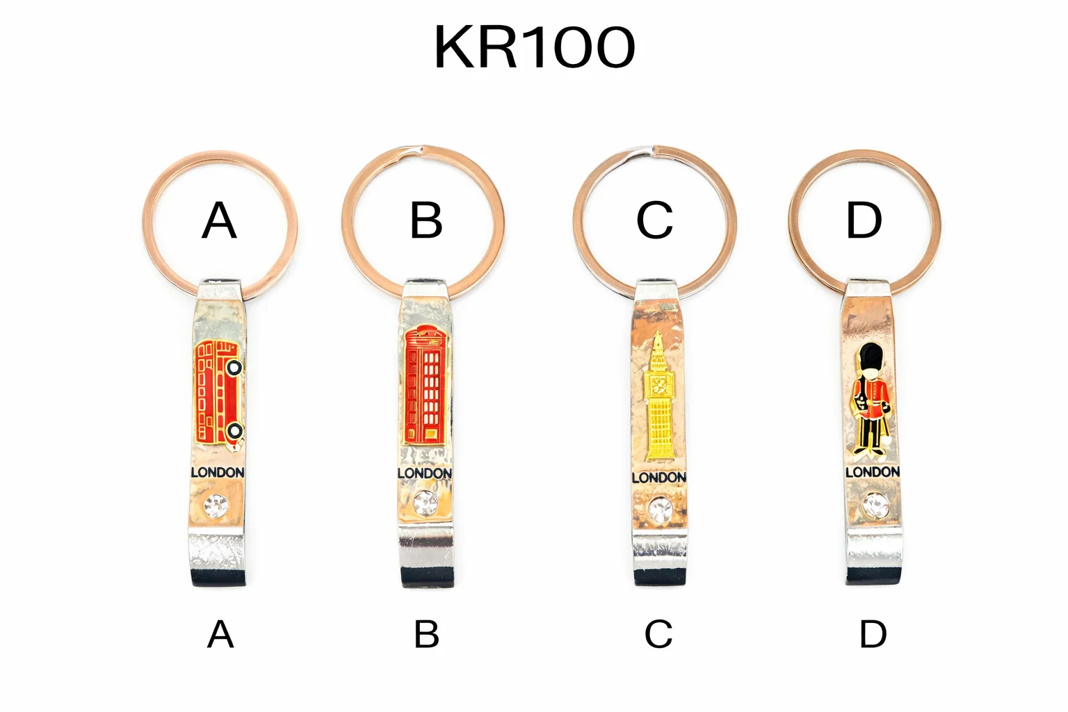 This classic London Souvenir Bottle Opener Keyring features a sturdy metal bottle opener decorated with iconic London designs including the red double-decker bus, telephone box, Big Ben, and Queen’s Guard. Crafted from durable metal with detailed enamel finishing, it combines practicality with a stylish London souvenir design.