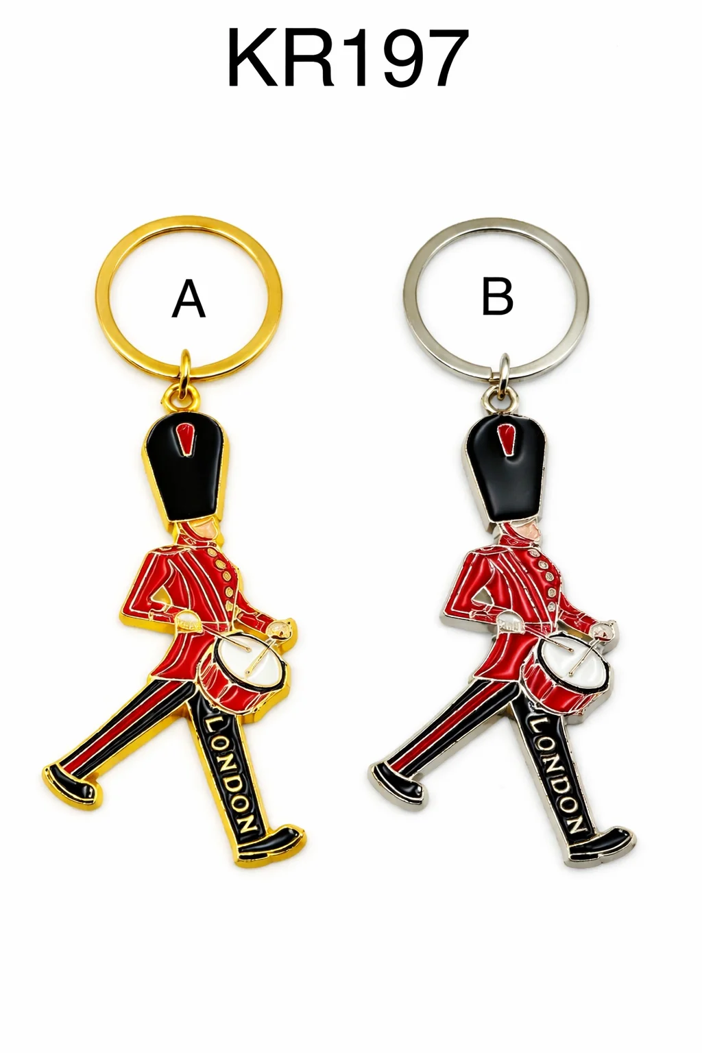 The London Heritage Souvenir Keyring features a charming design of a British Guard playing the drum, a classic symbol of London’s royal tradition. Available in two color finishes, this keyring is a fun and vibrant souvenir from the UK.