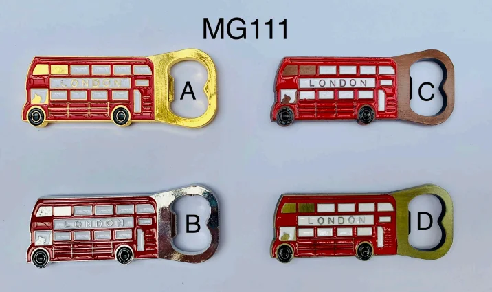 This London Double Decker Bus Bottle Opener Magnet features the iconic red London bus design with embossed “LONDON” detailing and an integrated bottle opener on one end. Crafted from solid metal with colourful enamel accents, it combines practical everyday use with classic London souvenir styling. Perfect for fridges, bars, or gift displays, and available in multiple metallic finishes.