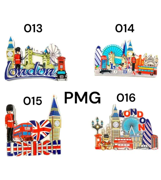 This London Famous Landmarks Resin Collection features bold, colourful designs showcasing London’s most iconic sights in a lively, layered style. Each magnet highlights famous landmarks such as Big Ben, the London Eye, Tower Bridge, red telephone boxes, double-decker buses, Union Jack elements, and Royal Guards, finished with prominent “London” lettering. Crafted from high-quality resin with detailed hand-painted accents, these magnets offer a vibrant and eye-catching souvenir option.