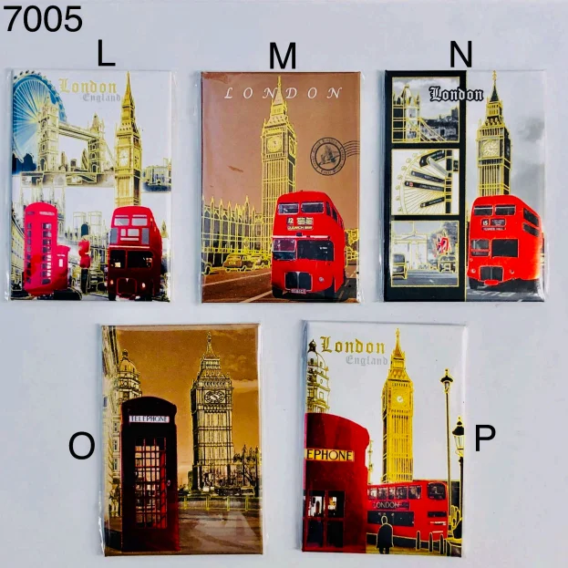 This London Landmark Postcard-Style Wooden Magnet collection features classic and vintage-inspired designs celebrating London’s most recognisable icons. Each square magnet showcases a bold composition of famous landmarks such as Big Ben, Tower Bridge, red double-decker buses, and traditional red telephone boxes, presented in postcard and travel-poster styles with warm tones and nostalgic city scenes.