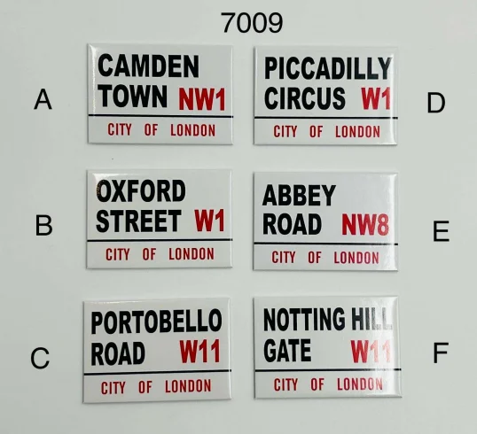 This London Street Sign Wooden Magnet Collection features iconic London locations designed in the classic British street sign style. Each magnet displays bold black lettering with red postcode highlights and “CITY OF LONDON” text, making them instantly recognisable and perfect as authentic London souvenir magnets.