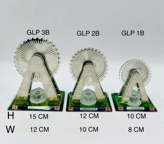 This London Eye Crystal Display Piece features a finely detailed miniature of the iconic London Eye, crafted in a crystal-style silver finish and mounted on a solid base. With clean lines and elegant detailing, it offers a modern London souvenir look and works perfectly as a decorative display piece for desks, shelves, or gift collections. Available in three size options.