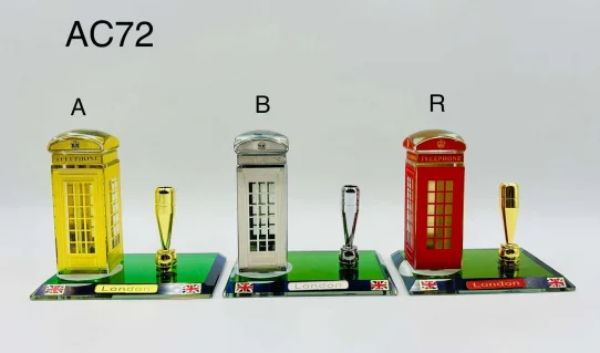This London Telephone Box Crystal Display with Pen Holder features a detailed crystal-style replica of the iconic British telephone box, mounted on a solid base with an integrated pen holder. Finished with fine detailing and classic London branding, it offers a practical yet stylish London souvenir, ideal for desks, offices, or gift displays. Available in multiple colour options.