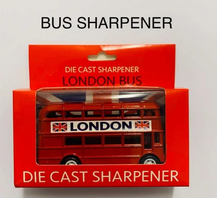 This London Bus Pencil Sharpener features a detailed die-cast model of the iconic red double-decker London bus with “London” and Union Jack detailing. Designed with a built-in pencil sharpener, it combines everyday practicality with a classic London souvenir look. Perfect for school, office use, or as a fun gift item.