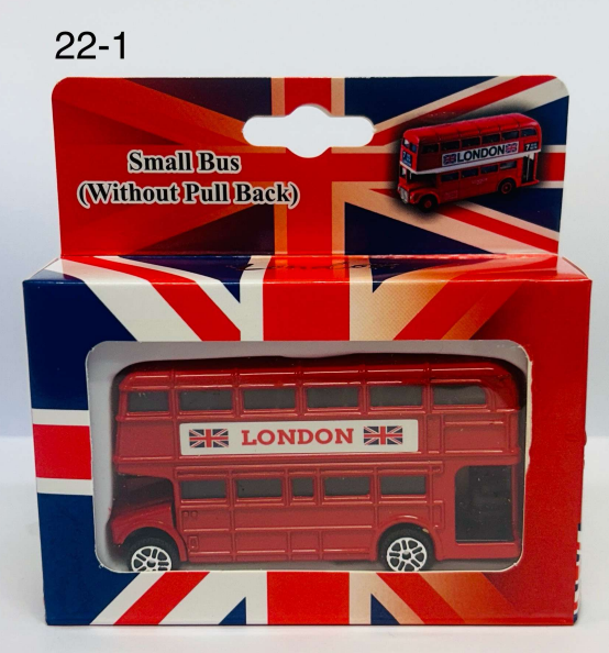 This London Small Bus Toy features a detailed miniature red double-decker London bus with Union Jack and London branding. Designed without a pull-back mechanism, it is ideal for simple play or display, offering a classic London souvenir look. Supplied in a Union Jack themed presentation box, it is perfect for gifting or souvenir shop displays.