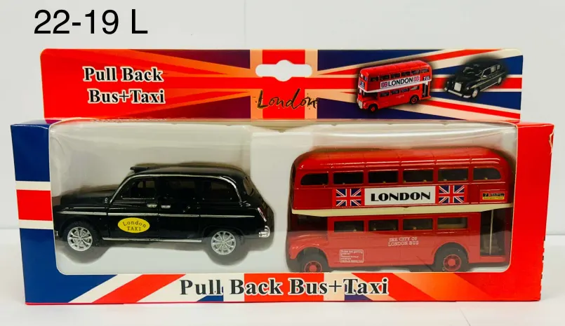 363-ANS-22-19L Large London Pull Back Bus and Taxi Toy Set