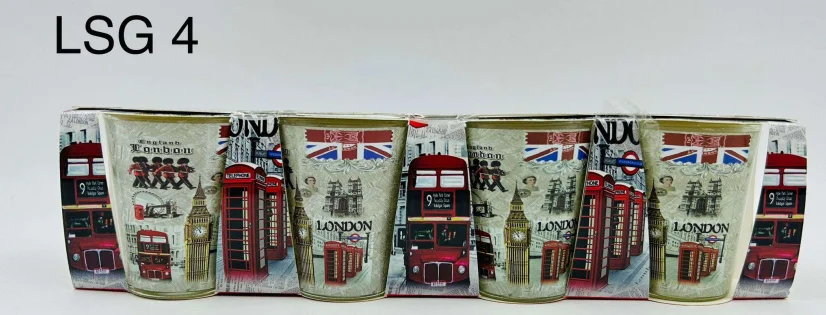 This London Classic Souvenir Shot Glass Set features printed glass shot glasses decorated with iconic London imagery, including red telephone boxes, double-decker buses, Big Ben, Union Jack elements, and traditional guards. Presented together as a coordinated set, it makes a perfect London souvenir for gifting, collecting, or display.