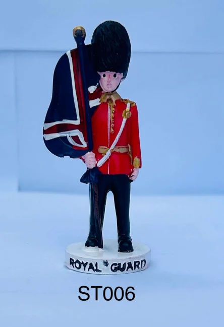 This Royal Guard Mini Statue features a detailed miniature figure of a traditional British royal guard, dressed in a classic red uniform with bearskin hat and holding a Union Jack flag. Finished with bold colours and a labelled base, it makes a popular London souvenir, perfect for display, gifting, or souvenir collections.