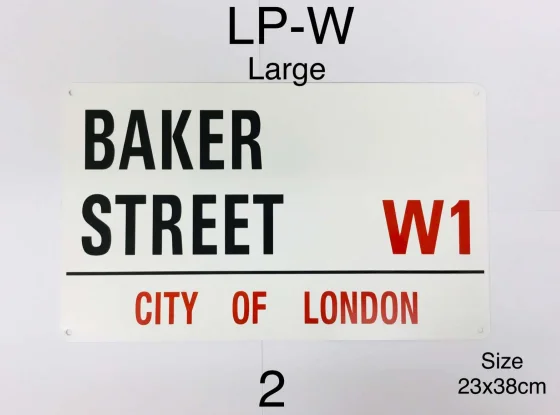 This London Street Name Wall Sign features a classic UK street sign design with bold black lettering and red postcode detail, inspired by famous London locations such as Abbey Road, Baker Street, Covent Garden, Oxford Street, Piccadilly Circus, and more. Made from durable material with a clean white background, it is ideal for wall display, home décor, shops, cafés, or as a distinctive London souvenir gift. Available in multiple street name designs.