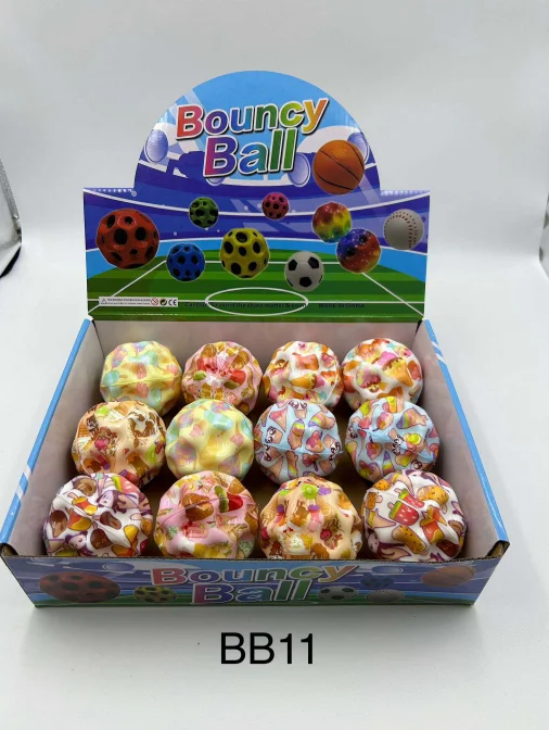 These Printed Bouncy Balls feature colourful and fun designs, including fruit patterns and galaxy-style prints. Made from durable rubber, they provide high bounce performance and are perfect for children’s play, party bags, gift shops, or souvenir stores. Supplied in a countertop display box, ideal for retail presentation.