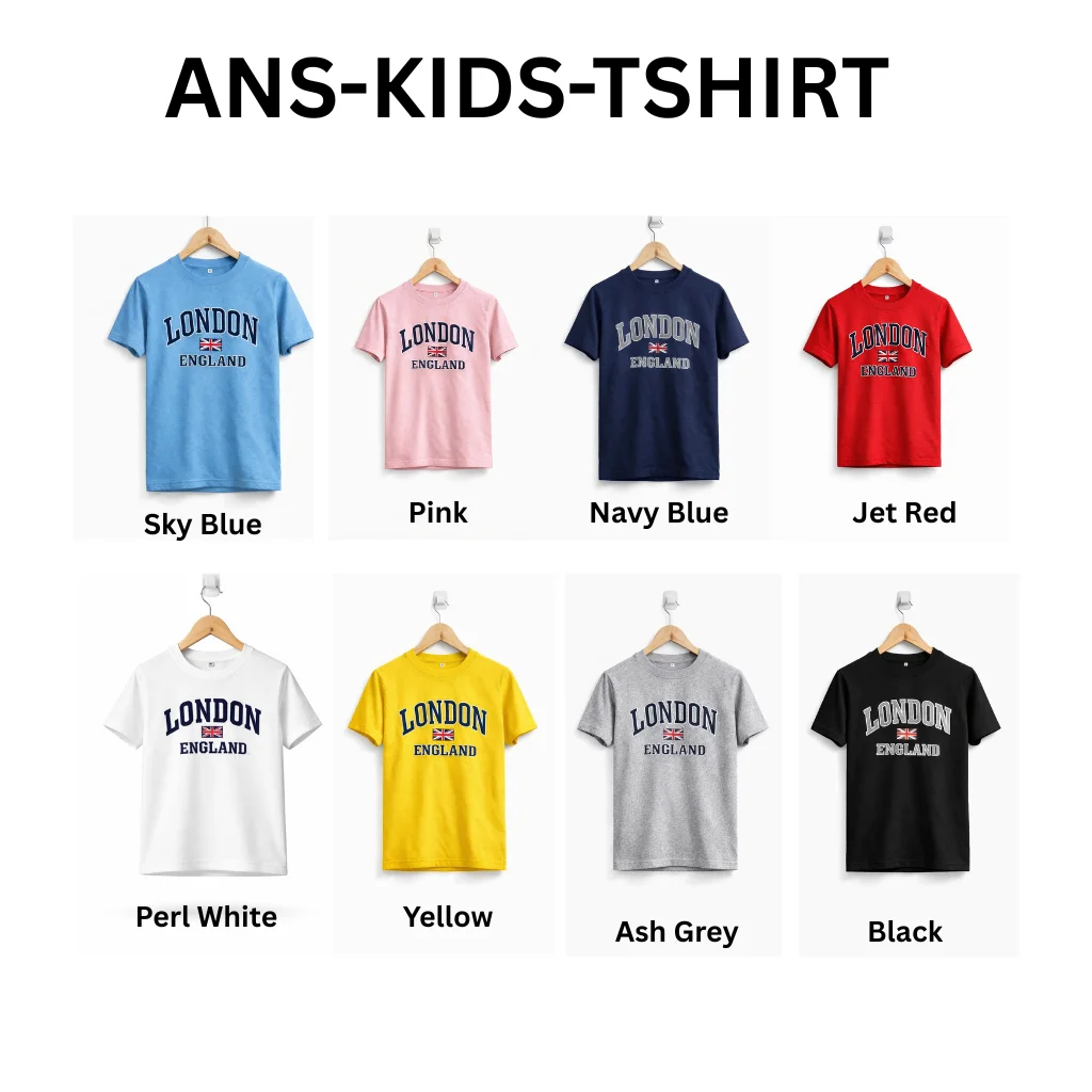 This Kids London England T-Shirt features a classic “London England” print with Union Jack detailing, designed for comfort and everyday wear. Made from soft, breathable fabric, it is perfect for school, casual outings, or as a stylish London souvenir for children. Available in a variety of bright and neutral colours.