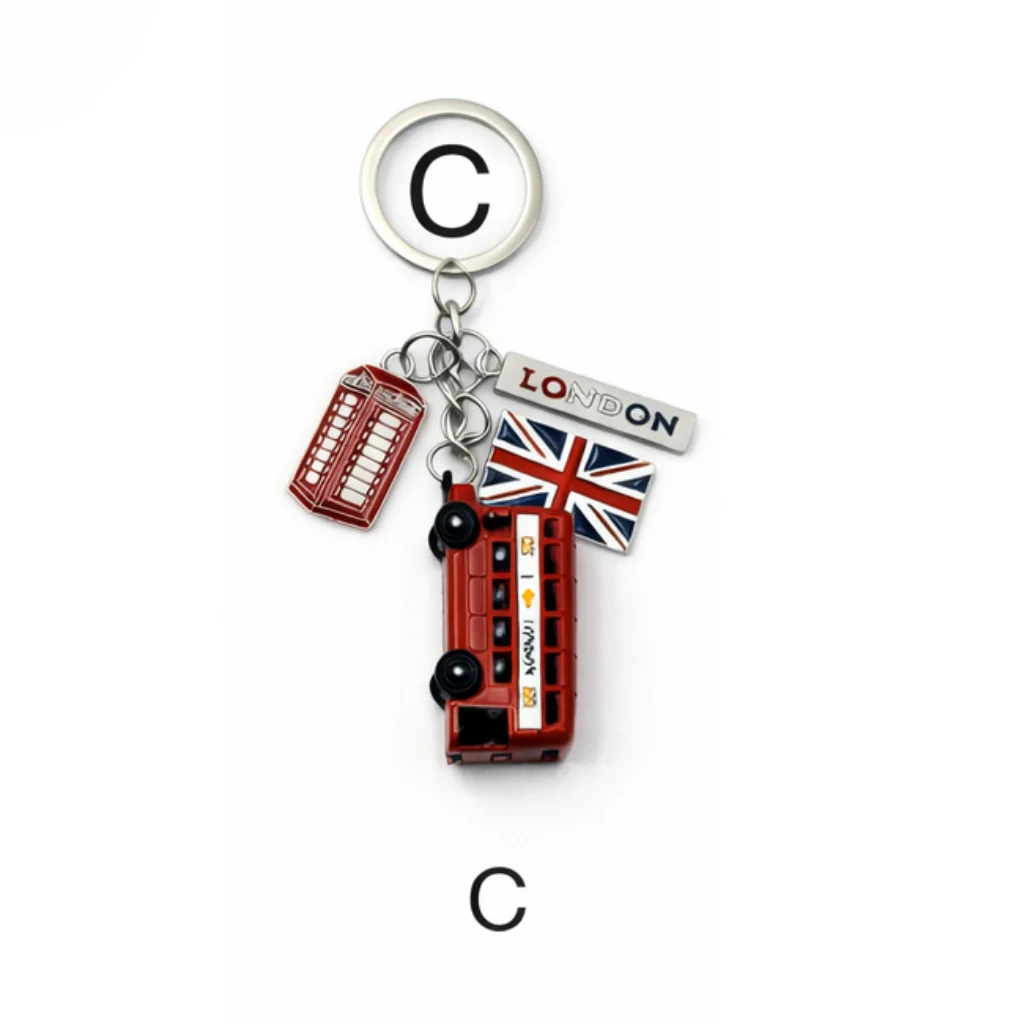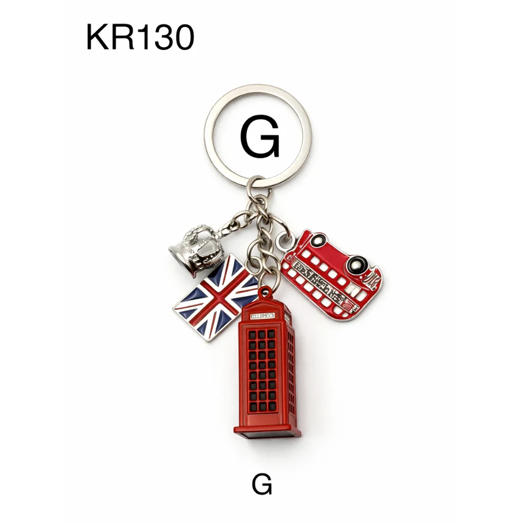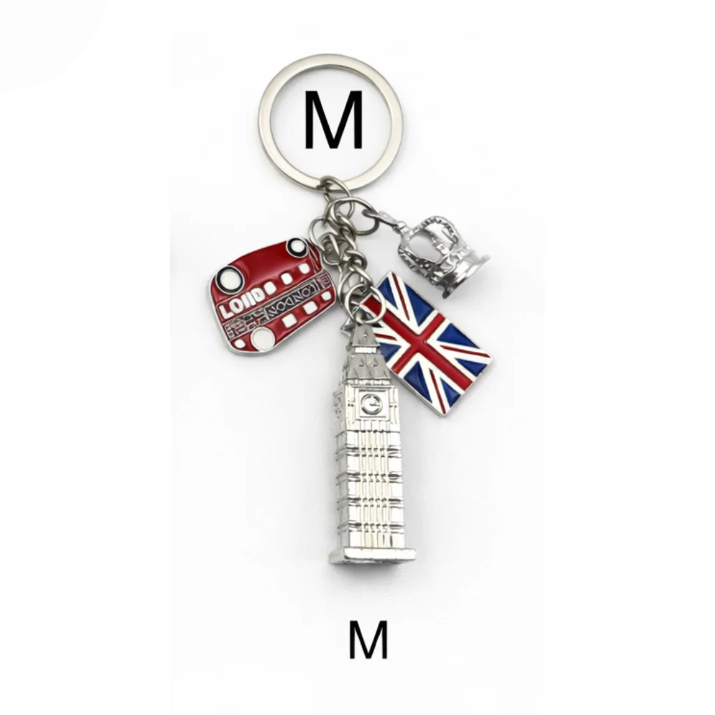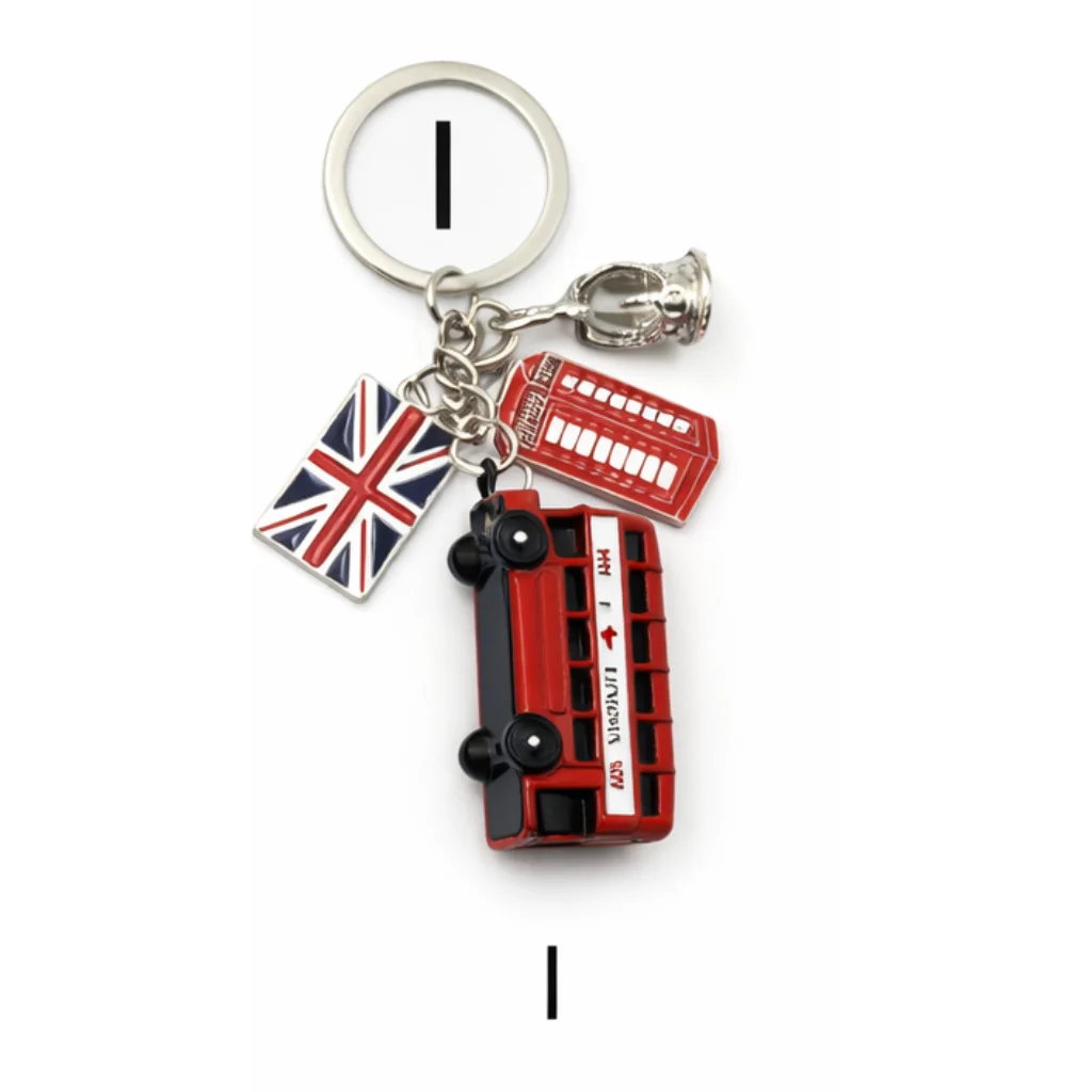 This classic London Charm Multi-Keyring features a collection of iconic London symbols including a red double-decker bus, Union Jack flag, telephone box, and Big Ben charm. Crafted from durable metal with detailed enamel finishing, it includes a strong metal keyring, making it both decorative and practical.
