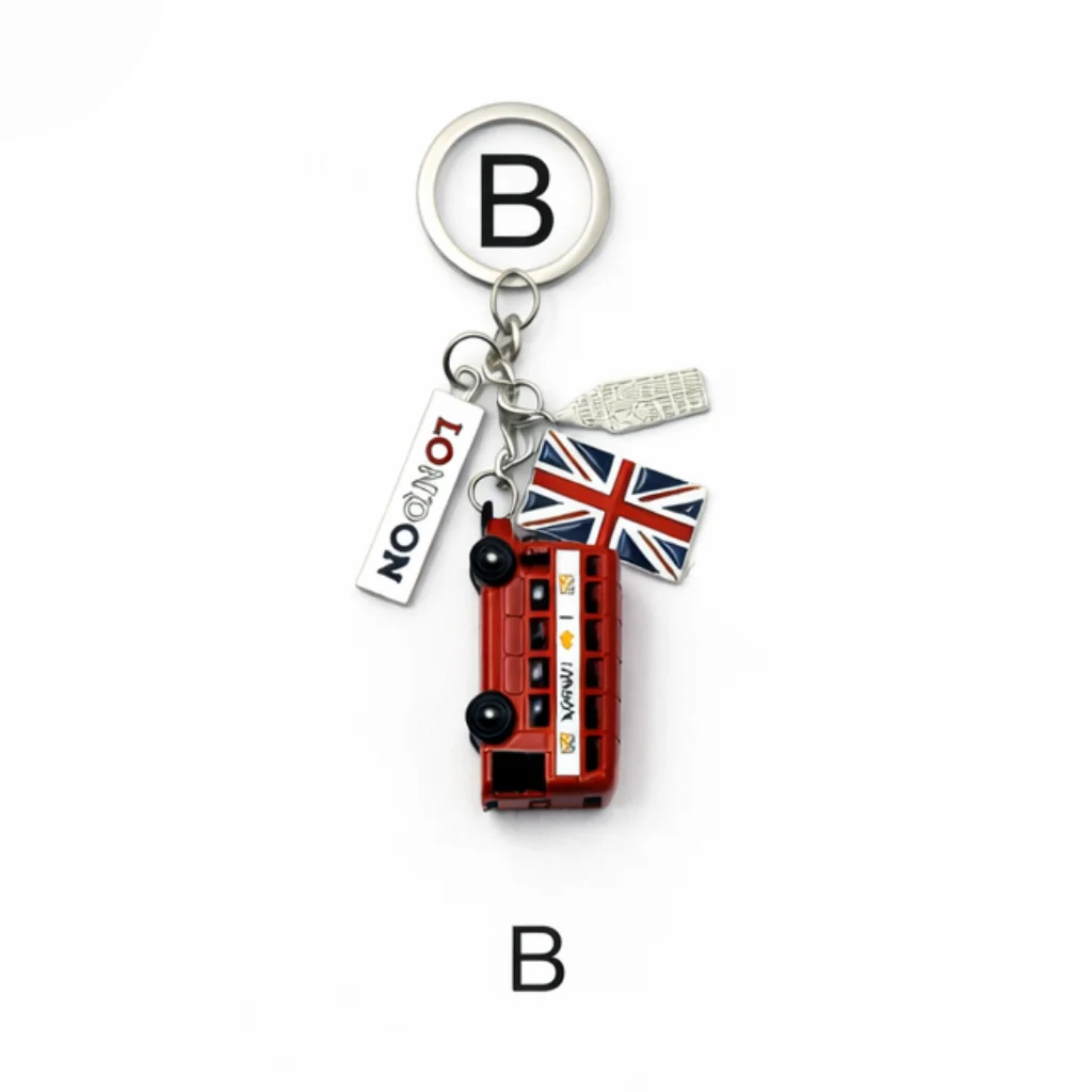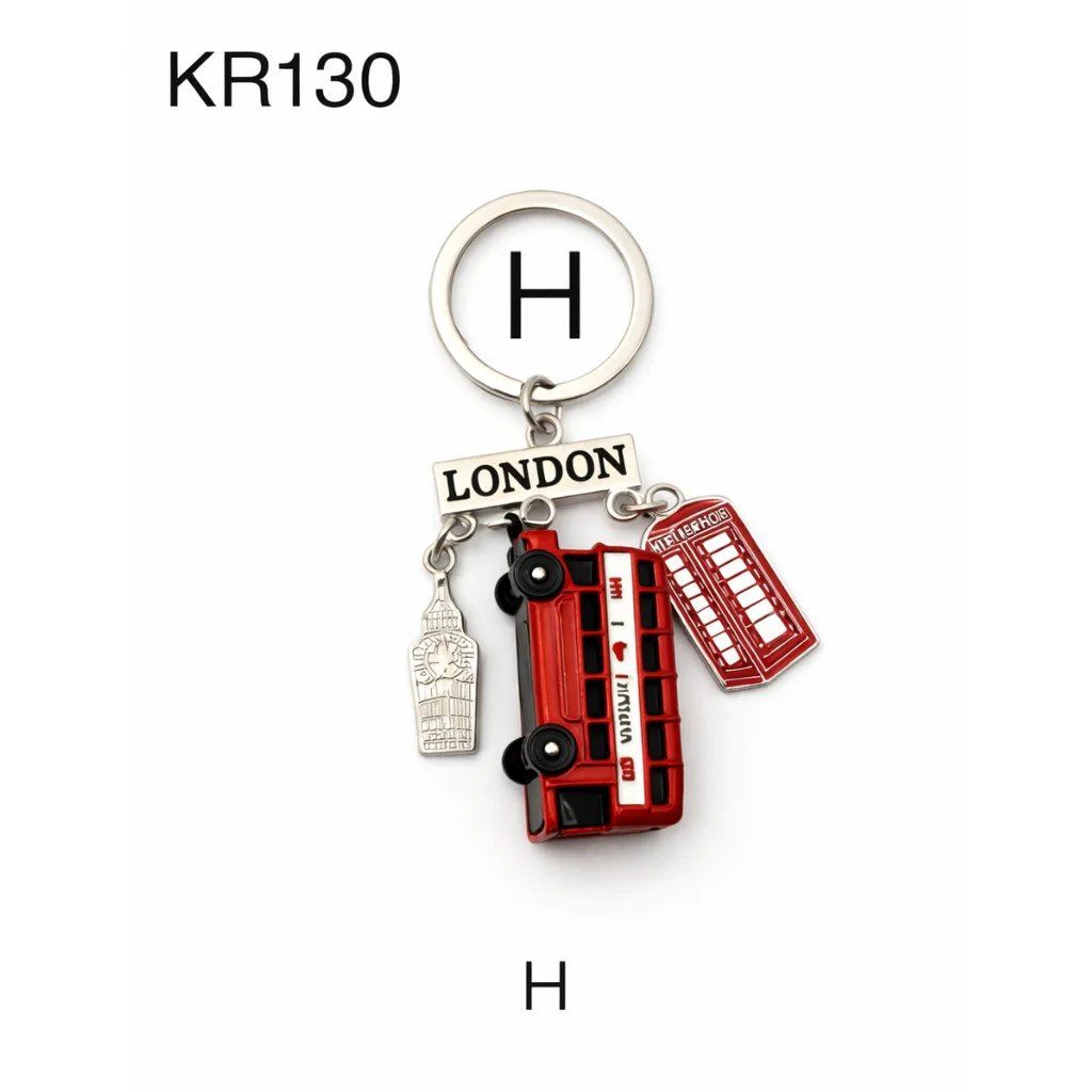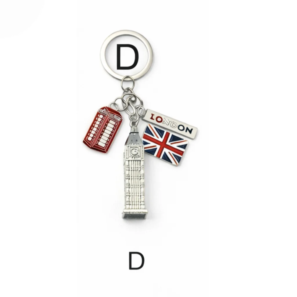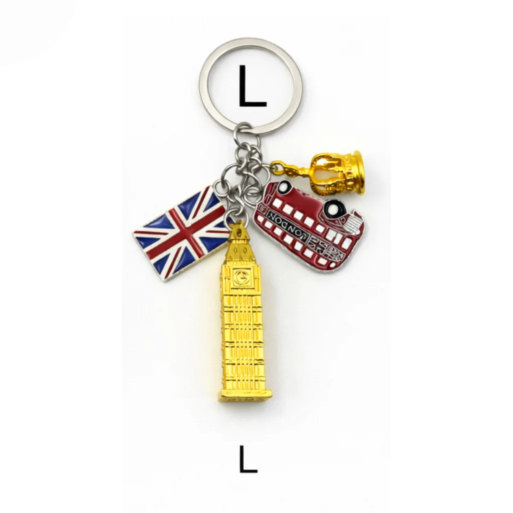 This classic London Charm Multi-Keyring features a collection of iconic London symbols including a red double-decker bus, Union Jack flag, telephone box, and Big Ben charm. Crafted from durable metal with detailed enamel finishing, it includes a strong metal keyring, making it both decorative and practical.