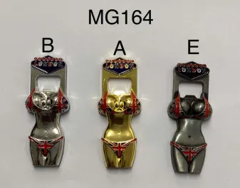 This London Pin-Up Girl Bottle Opener Magnet features a bold and playful silhouette design inspired by classic pin-up styling, finished with Union Jack detailing and a decorative crown accent. Crafted from solid metal with smooth enamel highlights, it combines eye-catching novelty design with practical use. The integrated bottle opener and strong rear magnet make it ideal for display on fridges or metal surfaces while remaining fully functional.